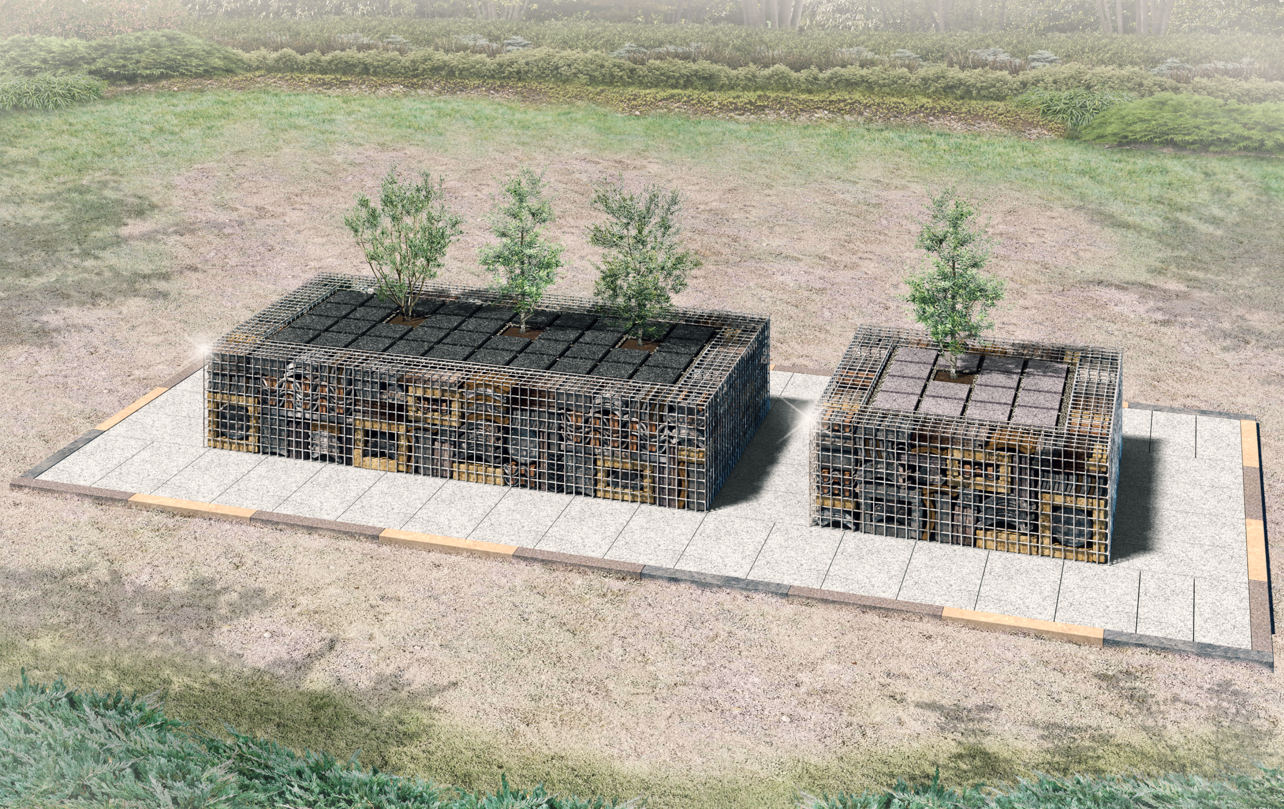 大地から真っ直ぐ伸びる13本の石塔は、亡くなった人を守り極楽浄土に導いてくれる「十三仏」を模して表現いたしました。
